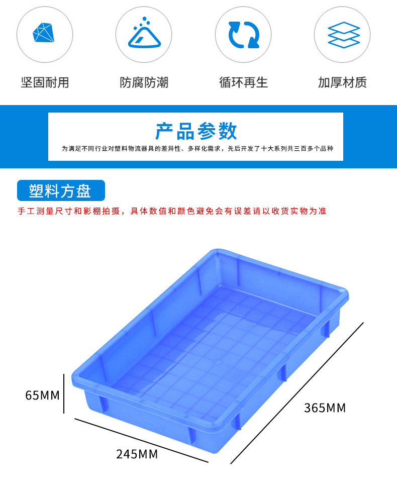 當前位置:塑料托盤 > 塑料周轉(zhuǎn)箱 > 普通周轉(zhuǎn)箱 > 塑料方盤系列