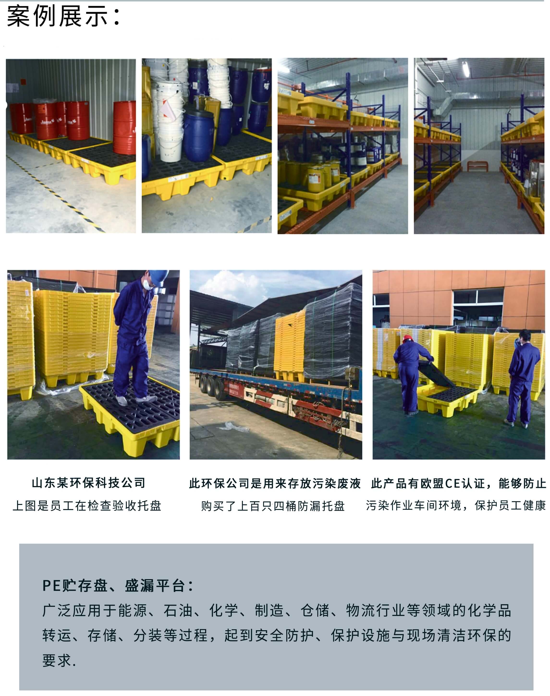 選擇使用防滲漏塑料托盤的目的是為了防止油品,化學品和危險液態(tài)品在存儲以及分裝的過程中發(fā)生的泄漏而造成操作人員的人身傷害以及泄漏造成的環(huán)境污染。通過使用這種能盛裝泄漏出來的液體的托盤,得到一個干凈、衛(wèi)生、安全的工作環(huán)境,不僅保護操作人安全,還能有效的防止環(huán)境污染,符合環(huán)保要求。