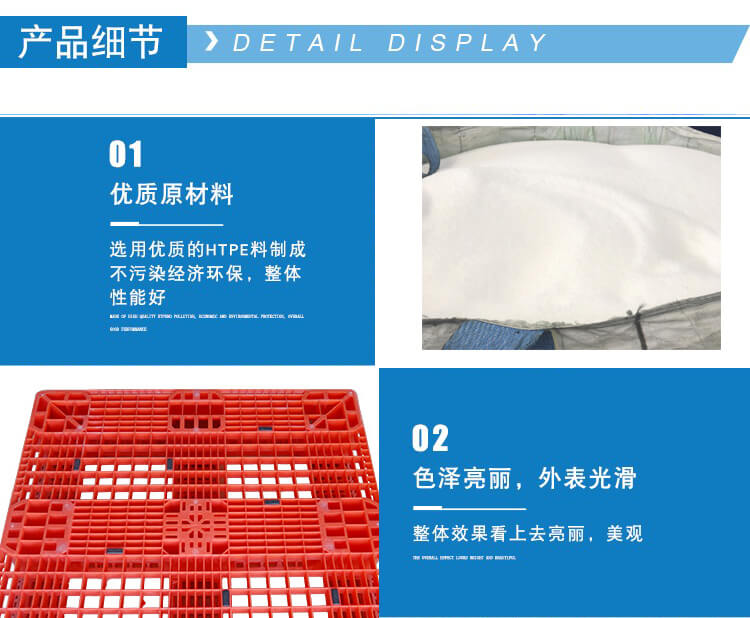塑料托盤是與叉車和貨架等物流設(shè)備結(jié)合使用的物流單元。它可以用于產(chǎn)品的存儲(chǔ),裝載和運(yùn)輸,是現(xiàn)代物流存儲(chǔ)的重要物流設(shè)備之一。塑料托盤的出現(xiàn)是為了滿足環(huán)境保護(hù)的需要,使